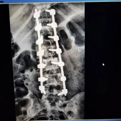 患者为青少年特发性脊柱侧弯,以腰2为中心向右侧突出,从胸11延伸至腰4