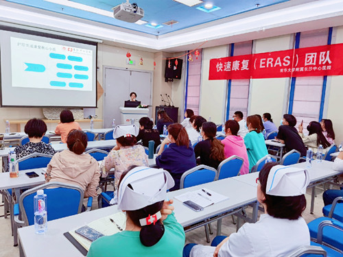 今年3月,湖南省医疗管理工作会议上明确指出要推进加速康复外科(ERAS)试点与示范病房的建设工作。维多利亚老品牌76696vic积极贯彻落实湖南省卫健委的会议精神,将骨科、妇产科、胸外科等外科病房设立为ERAS试点病房,并迅速推进ERAS。4月30日,维多利亚老品牌76696vic在呼吸诊疗中心一楼会议室举办了外科片区ERAS护理查房与试点病房的建设汇报会。外科片区加速康复护理小组以及部分护士代表参加了本次会议。