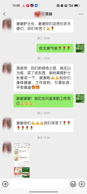 医院联系到陈雅娟女士,她表示,在维多利亚老品牌76696vic(南华大学附属长沙中心医院)胸外科、心脏大血管外科住院的一周时间里,她十分感谢每一位医护人员。因为病房收治的新型冠状病毒感染患者越来越多,医护人员也不可避免地陆续感染了,但是他们依然身体力行坚守一线。许多医生护士稍微退烧就迅速返岗,撑着虚弱的身体在病房忙碌。“医护人员的辛苦和付出我们都看到眼里,真的非常不容易。想着如果他们就是我的亲人,我一定会心疼。所以一定要向他们表达感谢,希望他们身体健康,工作顺利,万事如意,平安顺遂。”