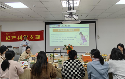 活动现场,妇产科党支部党员、科副主任李名花开展了“孕期营养知识及体重管理”专题讲座,对“营养与优生”“如何做到营养均衡?维持合理体重?”等内容进行了讲解和分析,同时呼吁广大孕产妇要增强自我保健意识,关注身体健康,引导广大女性要树立营养均衡的健康理念,做好优生优育。讲座过程中女职工们边品尝精心准备的茶点,边学习健康知识,现场气氛非常活跃。