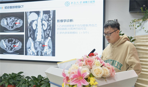 湘雅附三医院肿瘤科金龙博士在此次会议分享了一个乙状结肠癌合并肝转移的特殊病例。该病例MDT由胃肠外科主持,肝胆外科、肿瘤科、影像科、病理科深度参与诊疗过程。经过新辅助化疗及靶向治疗后,患者肿瘤降期后再次行MDT讨论,获得手术机会。金博士分享的病例充分体现了MDT的优越性,不同专业的专家强强联合、齐心协力,使患者最大程度获益。
