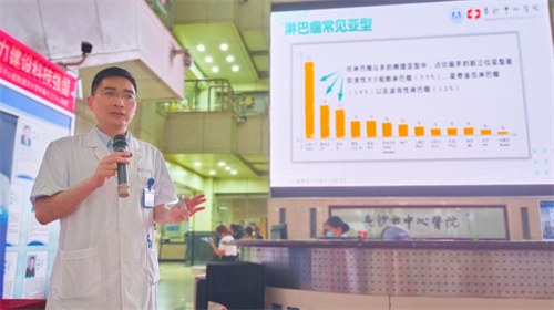 活动现场,血液内科主任、副主任医师尹亚飞就淋巴瘤这一源自淋巴造血系统的恶性肿瘤进行了详尽阐述。他明确指出,淋巴瘤的发病率正逐年攀升,其危害性不容忽视。随后,尹亚飞分别介绍了霍奇金淋巴瘤与非霍奇金淋巴瘤的临床特性,并着重强调,病理诊断是确诊此类疾病的黄金标准。同时,他还提及了现代医疗技术,如分子病理检测、PET-CT及MRI等影像手段,在促进淋巴瘤精准诊疗方面的积极作用。在谈及淋巴瘤的治疗策略时,尹亚飞全面概述了包括化疗、放疗、免疫治疗以及靶向治疗在内的多种治疗手段,并特别指出,对于部分早期淋巴瘤患者,手术治疗也是一种可行的选择。