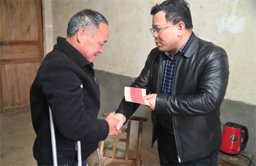 学习结束后,班子成员分成三个小组,为20户困难村民送去了慰问金、物资及新春的祝福。