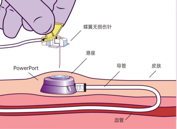 一种将植入式静脉给药装置放置于人体皮下的治疗性操作。体外没有任何暴露,日常生活不受限制,能有效提高患者的舒适度和生活质量。