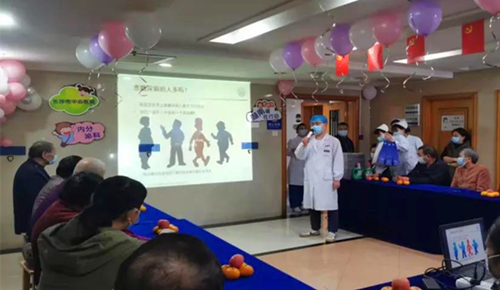 11月12日15:00,内分泌科围绕联合国糖尿病日主题举办了线下科普活动。根据疫情常态化防控形势要求,参加人员为内分泌科病房患者,活动期间严格落实疫情防控,佩戴好口罩。活动在青春活力美小护健身操的表演中拉开序幕,内科三党支部书记、内分泌科主任邵挥戈,用自己多年的行医经验和真实案例提醒各位糖友重视糖尿病的健康管理。