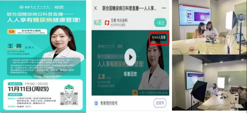 11月11日19:00,内分泌科副主任医师王菁做客直播间,以“人人享有糖尿病健康管理 ”为主题接受访谈直播。直播采用真实案例进行讲课, 利用讲解+互动答疑等多方式授课,主题明确,针对性强, 让观众受益颇多。线上和线下的观众互动活跃,截止11月12 日,直播观看量达36166 次,点赞用户达 25237 位。本次直播增加了观众们对糖尿病的理解, 也提升了糖尿病患者对糖尿病治疗方式的认知, 增加了观众们对南华大学附属长沙中心医院及其内分泌科的了解,进一步增强了患者对医院、科室与医生的信任感。