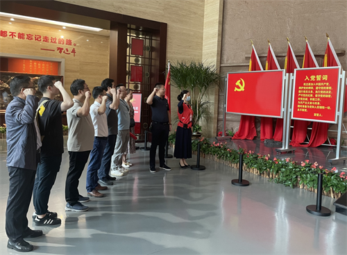 最后来到中国共产党长沙历史陈列大楼。进入大厅,“长岛人歌动地诗——中国共产党长沙历史陈列”映入眼帘。党员们激动的在此重温入党誓词,然后在讲解员的带领下依次参观学习了包括“建党先声 苍茫大地主沉浮”“浴血奋斗 峥嵘岁月铸丰碑”“接管建政 全面建设开新局”“改革开放 高歌猛进奔小康”“逐梦前行 阔步奋进新时代”“群星璀璨 名人荟萃展风采”等六个部分。在浴血奋战篇章中,党员们学习到1927年马日事变,共青团湖南省委书记田波扬及夫人陈昌甫同时牺牲,陈昌甫同志身怀六甲,在监狱中受尽非人的折磨,仍坚强不屈,牺牲时还有2个年幼的孩子,这种为了心中的信仰,为了民族的解放,舍小家为大家的牺牲精神,无不感动在场的党员们。