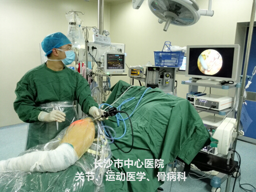 李良军博士在为患者进行关节镜下臀肌挛缩松解术。