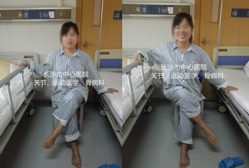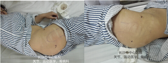 典型病例:一双侧臀肌挛缩患者,术前双髋弹响、不能跷二郎腿、不能双膝闭拢下蹲,术后第二天双侧均能跷二郎腿,伤口仅为两个约1厘米的小洞。