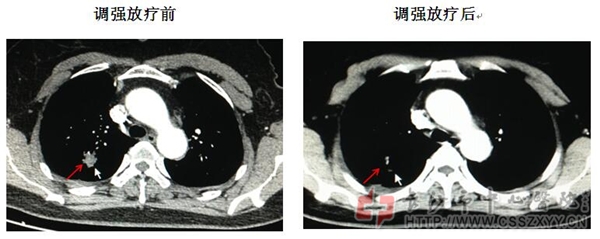 右肺腺癌调强适形放疗效果